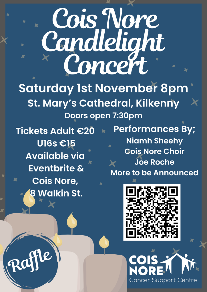 We are delighted to announce The Cois Nore Candlelight Concert is taking place on Saturday 1st of November in St. Mary’s Cathedral at 8pm.